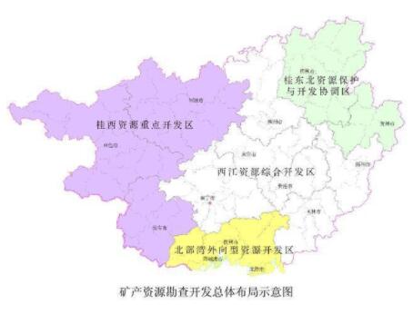 統(tǒng)籌謀劃形成“四區(qū)一帶”礦業(yè)發(fā)展總體布局:即桂西資源重點開發(fā)區(qū)、北部灣外向型資源加工區(qū)、賀州—來賓碳酸鈣特色發(fā)展區(qū)、桂北資源開發(fā)與生態(tài)保護協(xié)調區(qū)及西江千里礦業(yè)集聚發(fā)展帶。