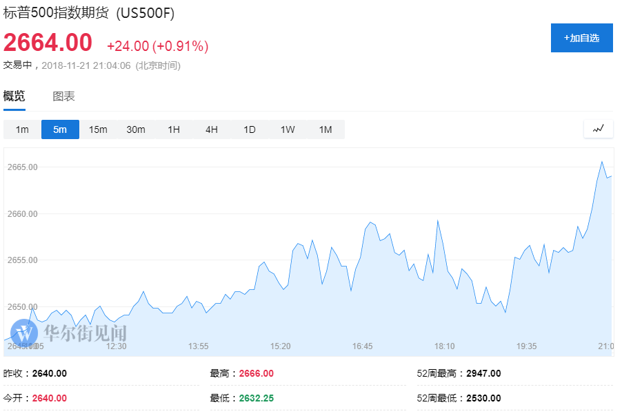 消息傳出后,美股股指期貨升至日內(nèi)高點。